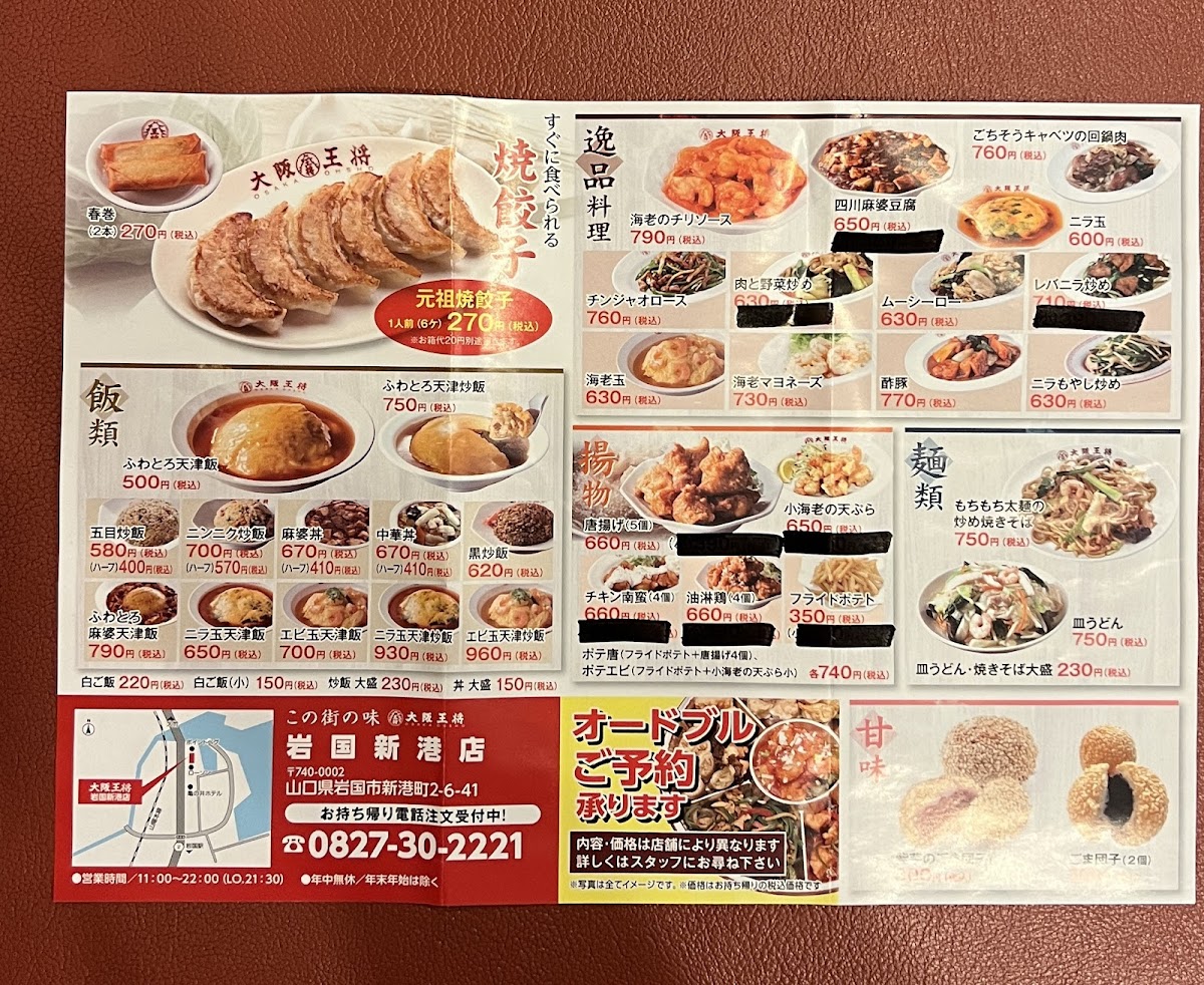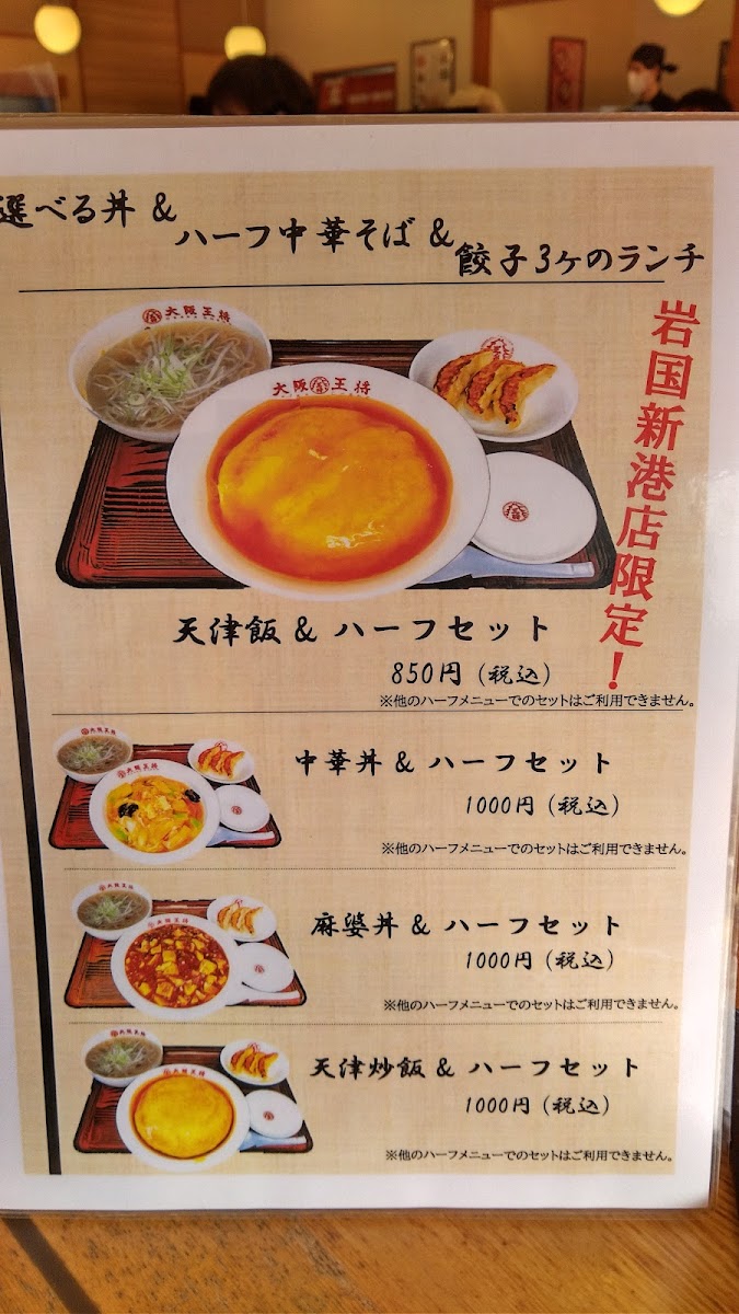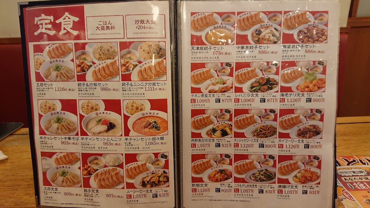 Osaka Ohsho Iwakuni Shinminato offers a diverse and satisfying menu with an array of flavorful Chinese-inspired dishes that cater to various tastes. One of the standout choices is the 中華そば 中華丼餃子セット, a comforting combination of Chinese noodles, rice bowl, and dumplings, perfect for a hearty meal. For those craving something spicy, the 担々麺 delivers a satisfying, rich flavor profile with a hint of heat. If you have a sweet tooth, the ゴマ団子 provides a delightful end to the meal with its crispy exterior and sweet filling. The レバニラ炒めと餃子 pairs savory stir-fried liver with crunchy dumplings, while the 生ビール adds a refreshing touch to any dish. For a truly indulgent experience, the ニンニク肉肉肉チャーハン 肉半撃 brings together garlic and multiple types of meat in a flavorful fried rice dish. The 天津飯とチキン南蛮 offers a satisfying balance of sweet and savory with its combination of Japanese-style egg rice and crispy chicken. オムえびめし is a must-try for those who enjoy seafood, with a light yet flavorful shrimp fried rice wrapped in an omelet. Another crowd-pleaser is the 麻婆丼と付属のスープ, a spicy and comforting bowl of mapo tofu rice with a side soup that complements the main dish perfectly. The 酢豚 天津飯 provides a tangy and tender take on sweet and sour pork paired with a delicious egg rice. For an extra filling meal, try the 山賊チャーハンセット 大盛り, a generous portion of fried rice with a satisfying mix of ingredients. The チンジャオロース 小 and 油淋鶏 小 are great for those who prefer smaller portions but still want bold flavors, offering stir-fried beef with peppers and crispy fried chicken, respectively. Lastly, the とりのせバリそば 餃子セット rounds off the menu with crispy noodles topped with chicken and served alongside tasty dumplings. With such a wide selection, Osaka Ohsho Iwakuni Shinminato offers something for everyone, whether you’re looking for a quick snack or a complete meal.